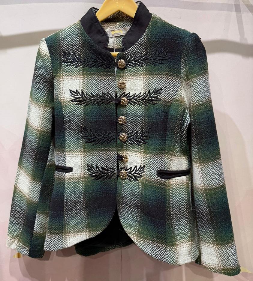 Blazer de cuadros verde y negra con bordados en negro. Es ideal!!!!
