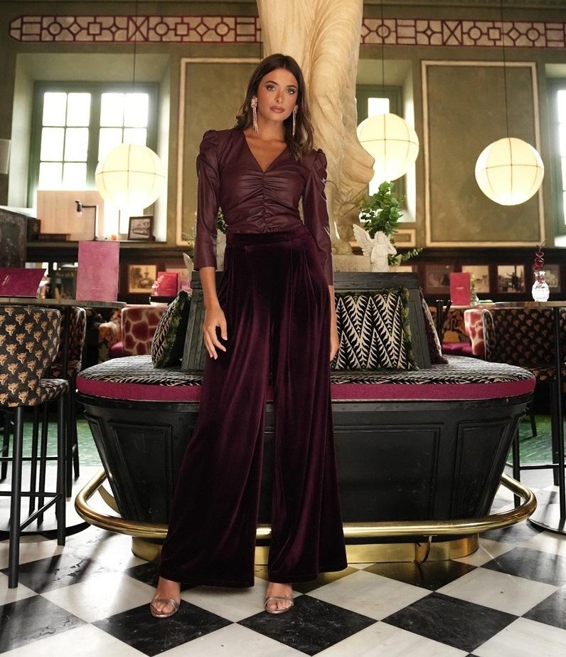 Este top está confeccionado en tejido efecto cuero que aporta carácter y modernidad. El fruncido central en el delantero estiliza la figura y realza el escote en pico. Las mangas ligeramente abullonadas añaden volumen y elegancia, creando un equilibrio perfecto entre fuerza y sutileza. Cierre con cremallera invisible en espalda. Ideal para combinar con el pantalón Nido