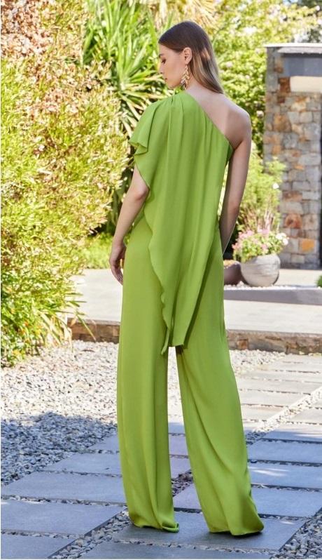 Mono con escote asimétrico en color verde aceite. Ideal para bodas, fiestas etc