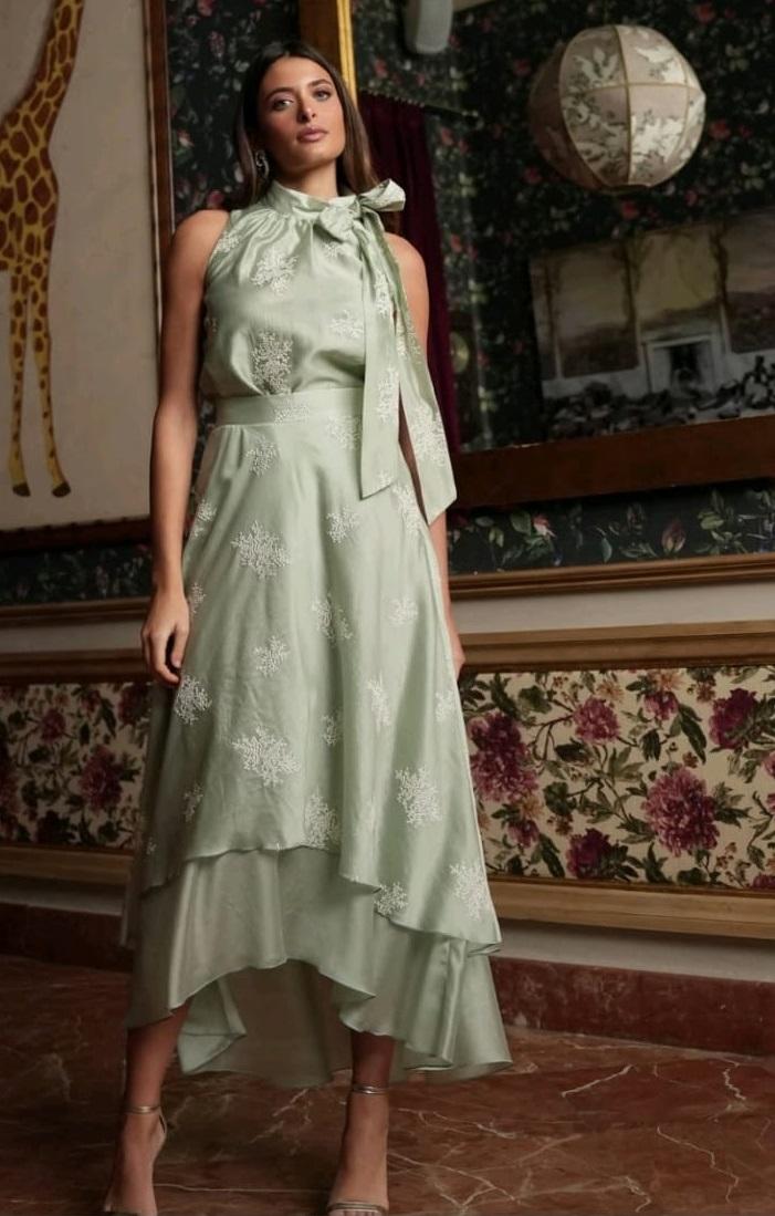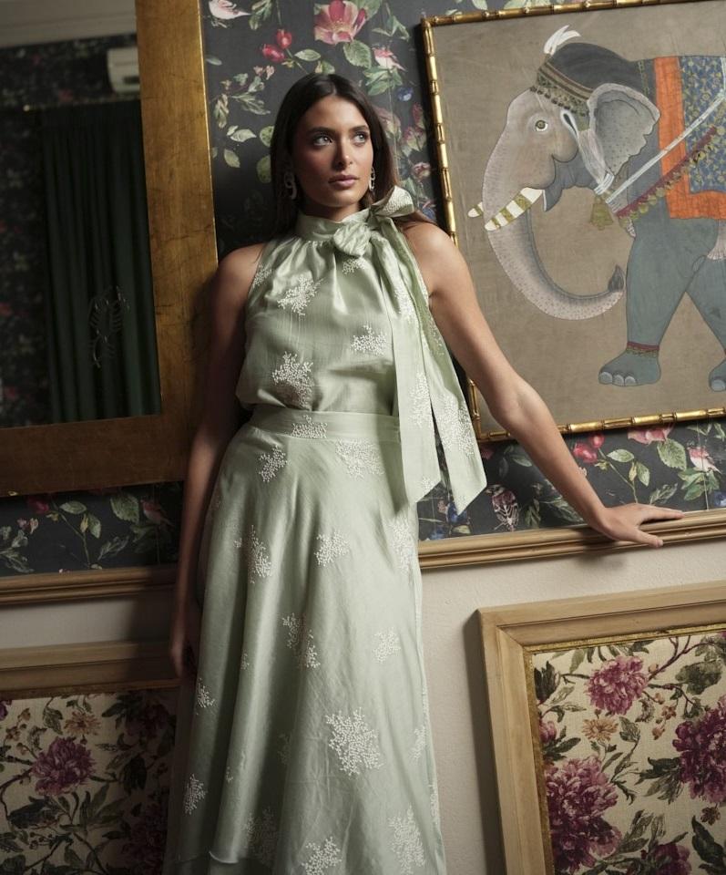 Conjunto Top y Falda en verde agua bordado