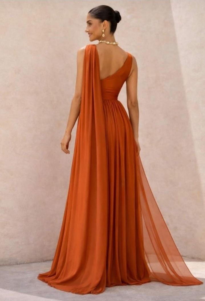 Vestido largo de gasa en color teja. Ideal para Graduaciones e Invitadas boda