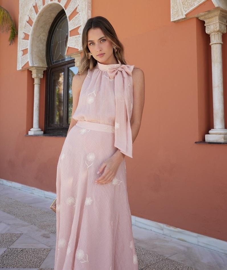 El conjunto Taylor en color nude, confeccionado en voile bordado, es una opción sofisticada y femenina para cualquier evento especial. El top incluye un delicado detalle de lazo en el cuello que aporta un toque romántico, mientras que la falda midi con vuelo crea movimiento. Perfecto para bodas, bautizos, comuniones o celebraciones, este conjunto combina textura, color y detalles refinados.
