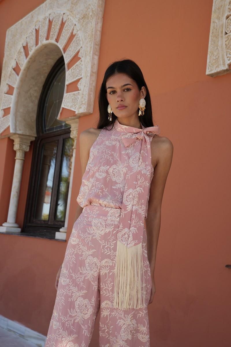 LEO. CONJUNTO TOP Y PANTALON BORDADO